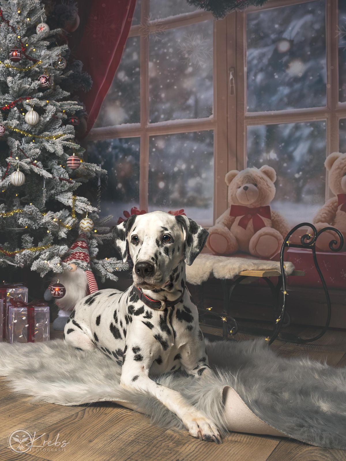 Der Moment der Wahrheit: Ich hatte vor lauter Aufregung den Objektivdeckel noch drauf. Wir haben herzlich gelacht, die Stimmung war gelockert und der Dalmatiner blieb tiefentspannt. Es war eine fantastische Erfahrung zu sehen, dass mein Konzept vom Tierporträt bis zum Familienshooting in diesem kleinen Raum wirklich funktioniert.